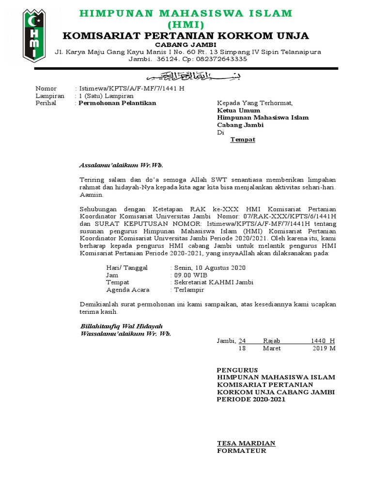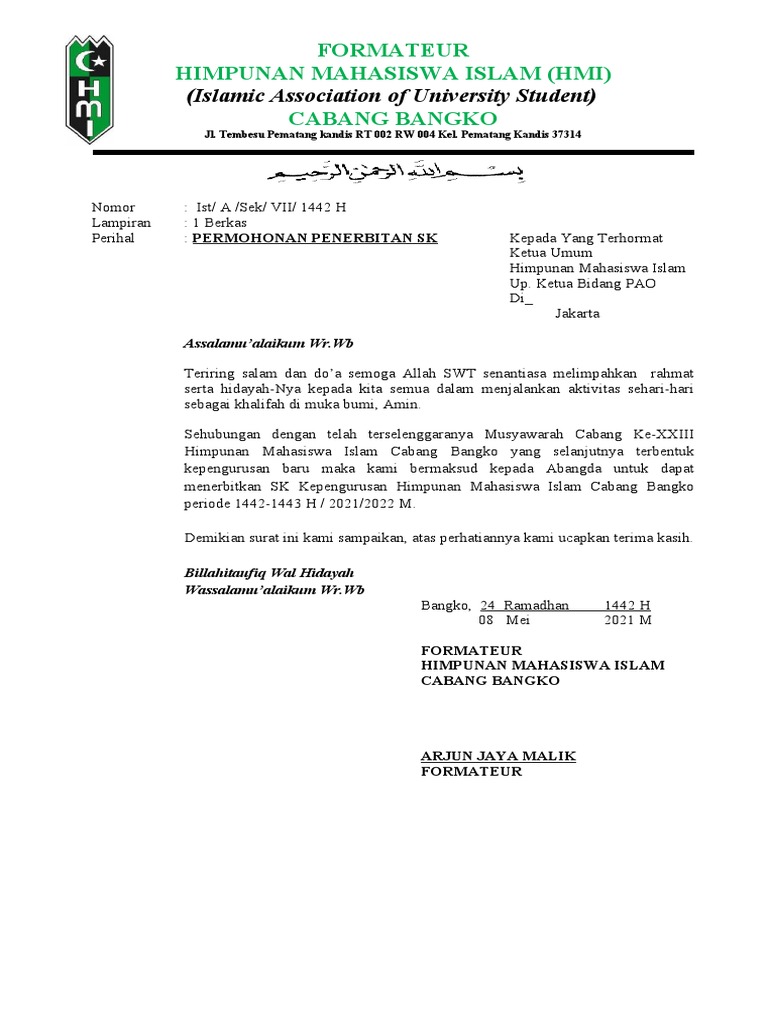 Contoh Surat Himpunan Mahasiswa Islam Hrasmi Otosection
